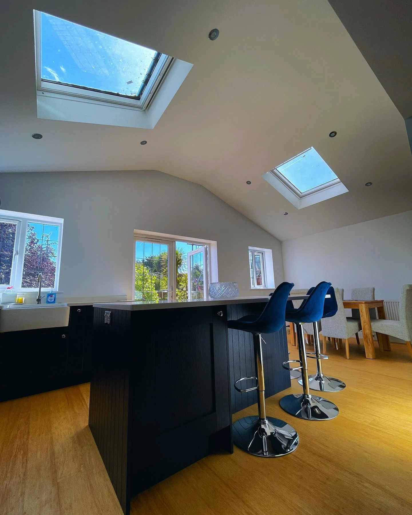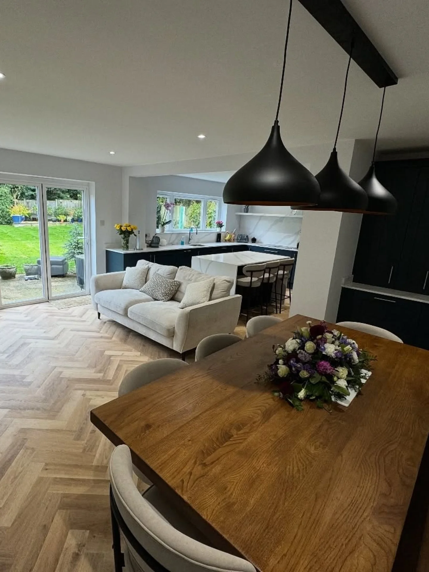 Our team took this tired kitchen/diner into an amazing open plan liveable space. We took the lower part of the chimney out which ran through the middle of the house, internal supporting walls and supported them all with an extensive steel structure. Our sister company Method Kitchens supplied and installed the kitchen plus we took care of all the finishings.